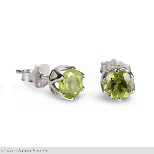 SIPED049-22275OSI / Ohrstecker (925er Sterlingsilber rhodiniert), Stein (Peridot 5 mm in Krappenfassung), Schliff (facettiert, rund), Größe (6 mm Durchmesser) / 49.- €uro