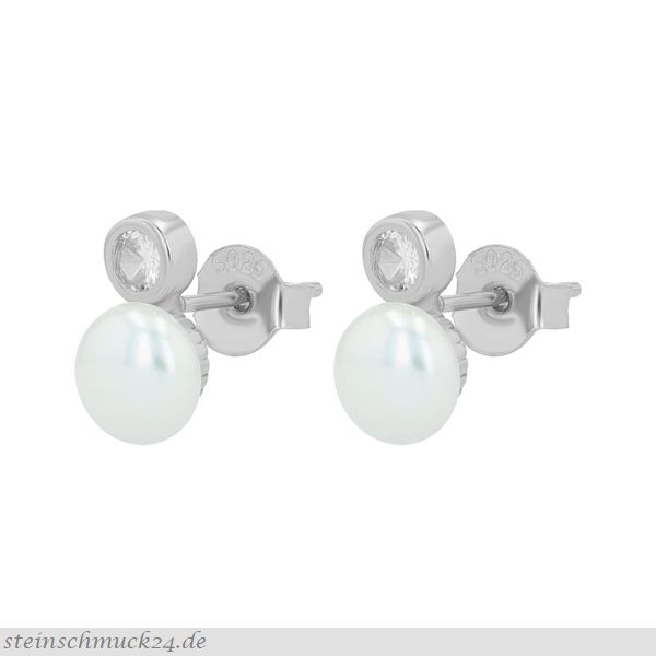 SIPEZ036-23245OSI / Ohrstecker (925er Sterlingsilber rhodiniert), Besatz (Süßwasser-Zuchtperlen 6 mm, Zirkonia neutral), Schliff (facettiert), Größe (8 mm Durchmesser) / 36.- €uro