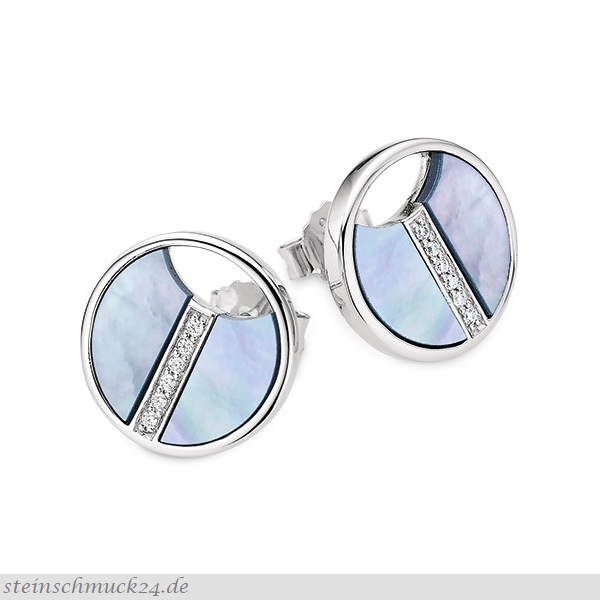 SIPMZ058-21386OSI / Ohrstecker (925er Sterlingsilber rhodiniert), Besatz (Perlmutt, Zirkonia neutral), Schliff (facettiert), Größe (14 mm Durchmesser) / 58.- €uro